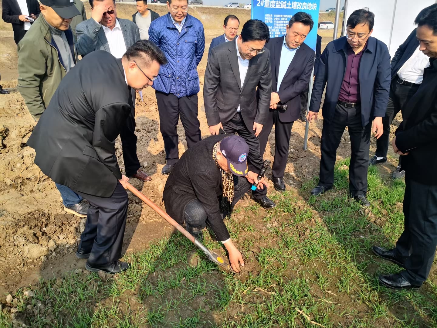 11月16日上午,青島市城陽(yáng)區(qū)中重度鹽堿土壤深度改良示范工程現(xiàn)場(chǎng)推廣會(huì),在青島市城陽(yáng)區(qū)陽(yáng)光農(nóng)業(yè)發(fā)展投資有限公司組織下在上馬街道鹽堿地稻作改良示范基地順利召開(kāi),城陽(yáng)區(qū)區(qū)委副書(shū)記區(qū)長(zhǎng)解宏勁、區(qū)科技局、區(qū)農(nóng)業(yè)農(nóng)村局、上馬街道辦事處、區(qū)農(nóng)發(fā)投資公司、青島清大三體生物科技有限公司、ETS(天津)生物科技發(fā)展有限公司主要負(fù)責(zé)人以及投資機(jī)構(gòu)代表等出席了此次試驗(yàn)推廣會(huì)。