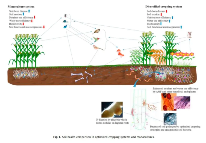 新作物多樣化與有益的交流能力的改善土壤生物可能是一個(gè)新的角度對提高農(nóng)作物產(chǎn)量,改善土壤養(yǎng)分利用效率,并減少農(nóng)業(yè)投入成本和人工化學(xué)應(yīng)用的環(huán)境影響,從而導(dǎo)致更好的土壤健康和可持續(xù)農(nóng)業(yè)生態(tài)系統(tǒng)。