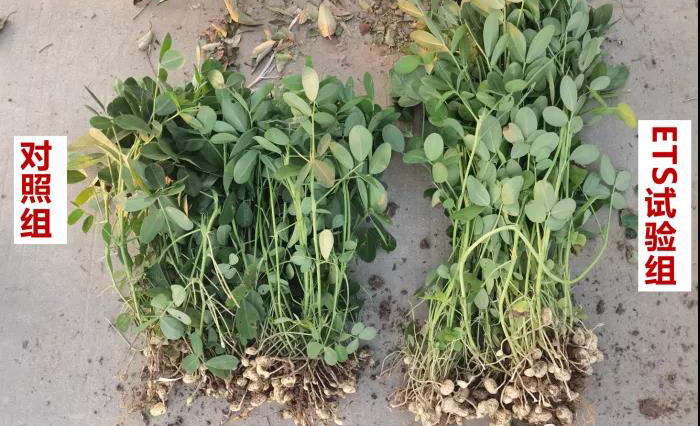 萬冢鎮(zhèn)郭寺村五百畝實(shí)驗(yàn)基地采用ETS改良花生種植土壤,改良地塊的花生根系毛細(xì)根和根瘤菌數(shù)量顯著增多,促進(jìn)了植株對營養(yǎng)元素的吸收和轉(zhuǎn)化;花生座果率提升約25%、株高增加約30%,預(yù)計(jì)畝產(chǎn)提升約25%,實(shí)現(xiàn)了花生的減肥增產(chǎn)。