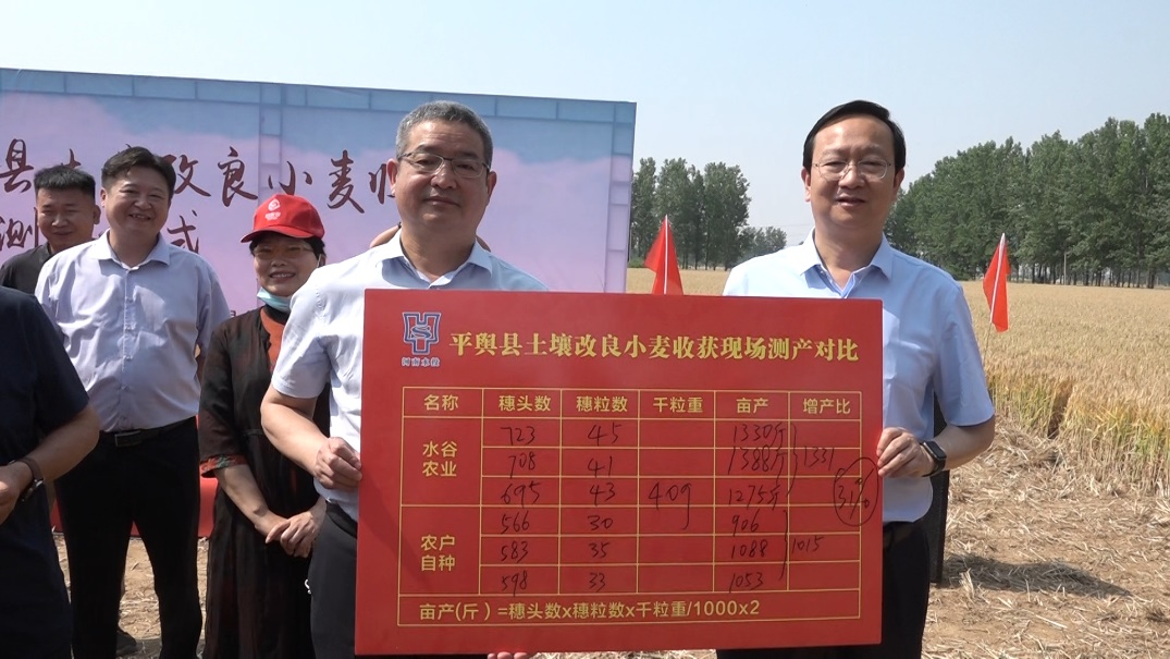 5月24日,河南水谷農(nóng)業(yè)發(fā)展有限公司聯(lián)合平輿縣人民政府在平輿縣老王崗鄉(xiāng)白龍廟村舉行2022年平輿縣土壤改良小麥實(shí)驗(yàn)田測(cè)產(chǎn)儀式。