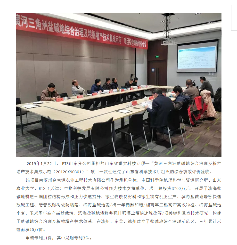 ETS山東分公司承擔的山東省重大科技專項--“黃河三角洲鹽堿地綜合治理及糧棉增產(chǎn)技術集成示范”項目順利通過驗收