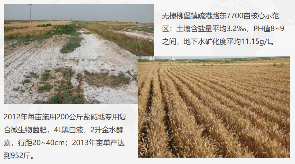 在山東環(huán)渤海地區(qū)的30個(gè)縣(市、區(qū))推廣應(yīng)用,包括1500萬(wàn)畝糧田、棉改糧100萬(wàn)畝、整治眼見(jiàn)土地20萬(wàn)畝,糧食增產(chǎn)15億公斤,保障國(guó)家糧食安全。